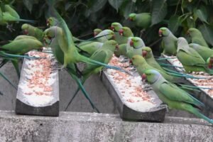 Watching so many parrots enjoying the rice and groundnuts is also a blessing to my opinion.   The couple’s dedication to feeding the birds has not only provided them a source of pleasure but also a sense of spiritual  fulfilment and purpose of life.    The terrace is in real sense, a testament of their commitment to nature’s welfare and conservation efforts too.