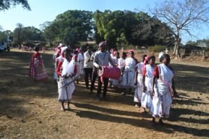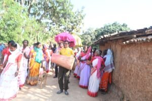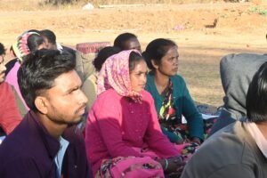We left Rata Silli after breakfast   for Tetertolly village for meeting. After having breakfast again with some new local grains and finger millet. We had some kind of sweet porridge (Paysam) made out of some small local grains. It was my first experience of having such a taste. I am a well-travelled man in India yet I missed this item which reminded me again and again “ বিপুলা এই  পৃথিবীর কত টুকু জানি “ meaning  How much do I know about this vast world? With this feeling I moved   to   Jarda/Bandotolly  followed by Hariharpur Gram Sabha. After the meeting with the Hariharpur villagers we had our lunch and thereafter moved to BHIKAMPUR Gram Sabha followed by Jari Gram Sabha which was the village of Paramvir Albert Ekka who sacrificed his life in India-Pak war in 1971. It was already late hence we had Gram Sabha with the villagers and went to residence of the Lady Gram Panchayat where food and stay arrangements were made.  There were two half constructed rooms which were given to the male members and the women participants were accommodated in their house.