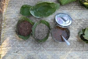 We left the place at about 7:00 am for the place named UDNI  Panchayet Bhawan where our breakfast was arranged. We reached the place between  8:30 to 9:00 am and our breakfast was prepared by the Gram Shava members. Breakfast was simple, yet local form of Idli and plain dosha made of finger millet and local rice. I also interacted with some local primary students who were going for picnic and could feel their vibrating energy for group activities. Prof. Gupta felicitated one teacher from ASUR (a primitive tribe) who was engaged in preparing a dictionary of local dialect. While discussion with the members of Gram Sabha, Prof. Gupta set the tone of the discussion for the next seven days to be followed  in our Gram Sabha meetings which were mainly on product diversification; utilization of discarded fruit (Mango, Jack-fruit, Jamun, etc) waste  material  in health and  as an additional source of income; importance of schooling and how to give additional support to dropouts; health benefits of  local seasonal forest based vegetables; importance of using cast iron utensils for cooking and how it helps in correcting anaemia in women; preserving local artifacts and selling as gift material; preparation of pesticides with the locally available poisonous plants,   etc.  The same issues would be  dealt in all the seven villages also and the knowledge would be spread among the villagers.