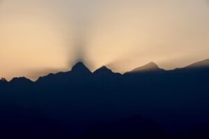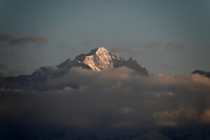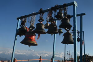 The temple sits atop the hill and very cute yet majestic. The clear view of the surrounding mountain peaks from the Kartik Swami Temple is awesome, inspiring with the full range of Himalayan peaks. Sunrise was dramatic. We were fortunate to witness the mystic morning hours which was a little misty but clear. We could capture stunning shots of the surrounding mountain ranges from a hilltop point behind the temple.